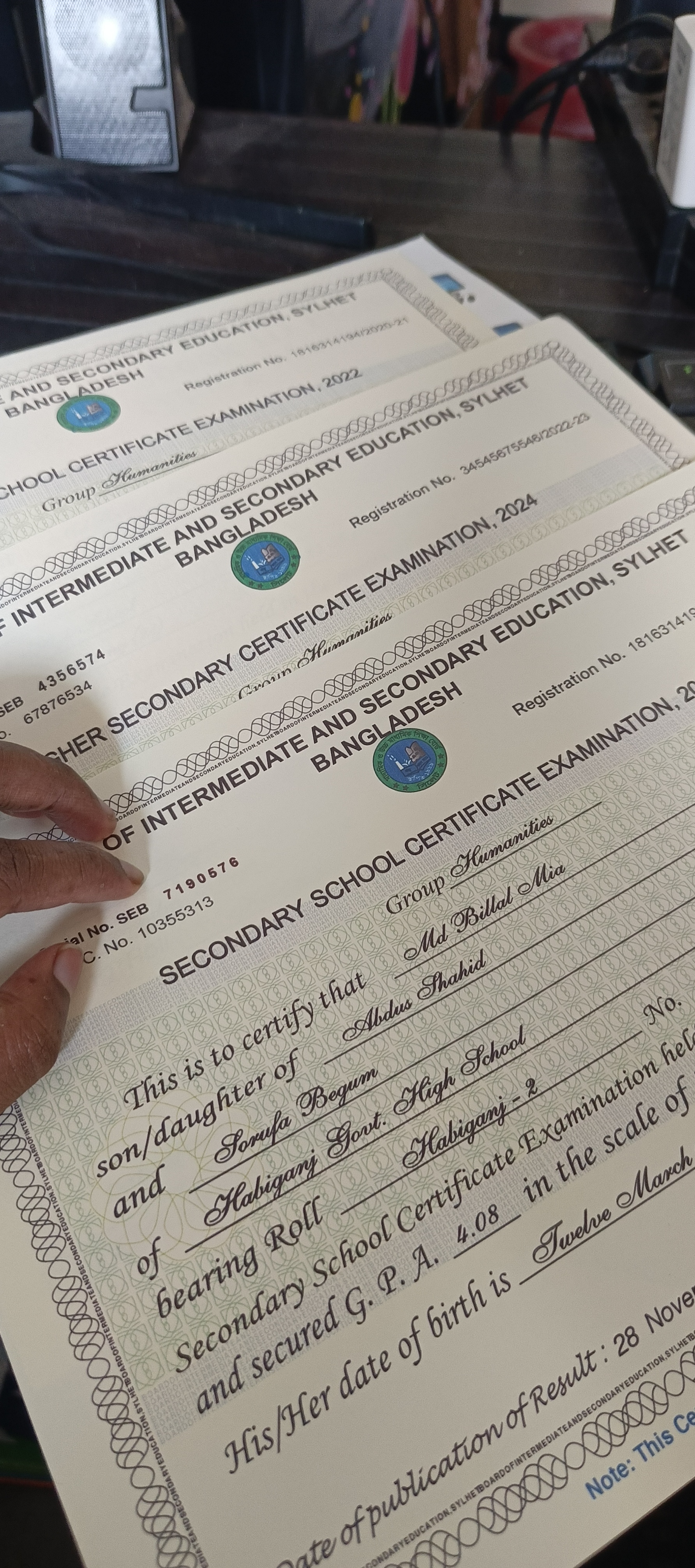সিলেট বোর্ডের এস এস সি এবং এইচ এস এসসি হার্ডকপি কারো কাজের মান যথেষ্ট ছিল
