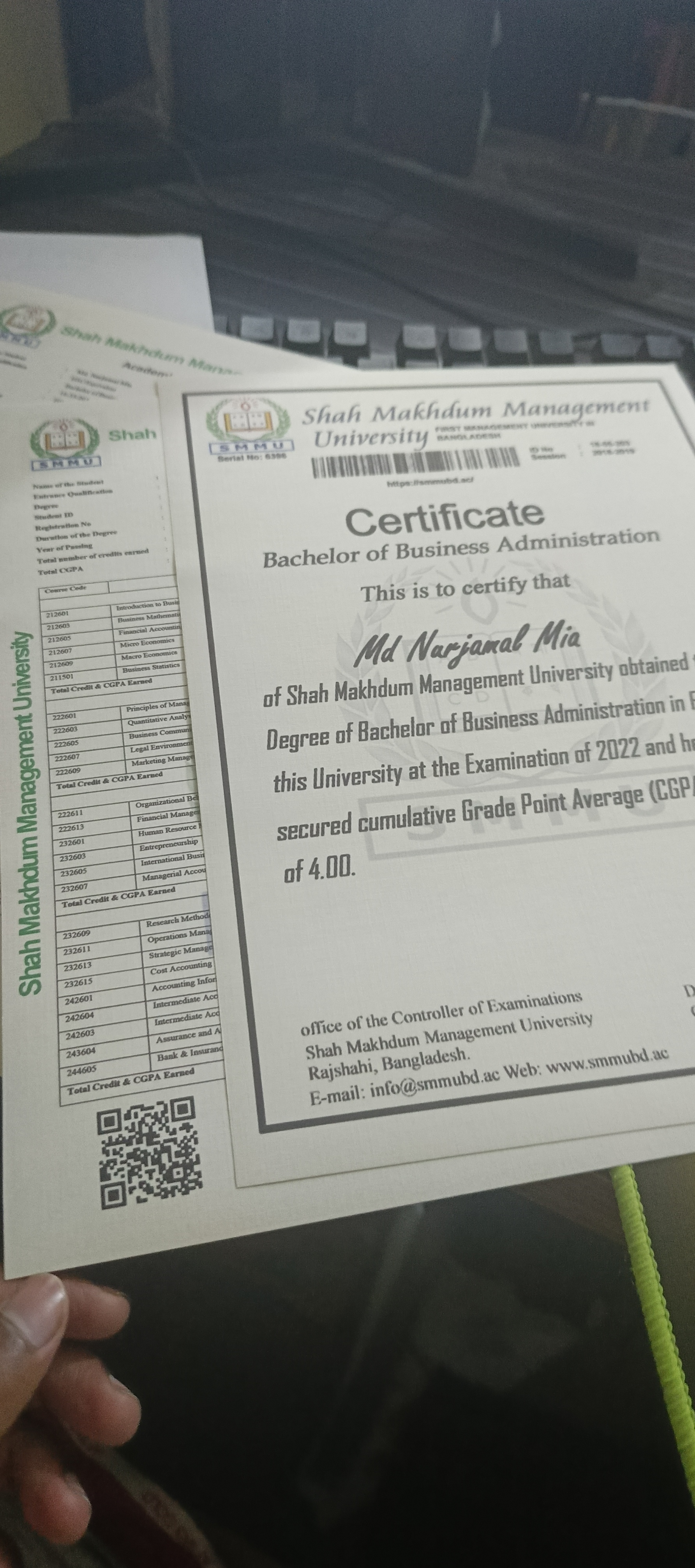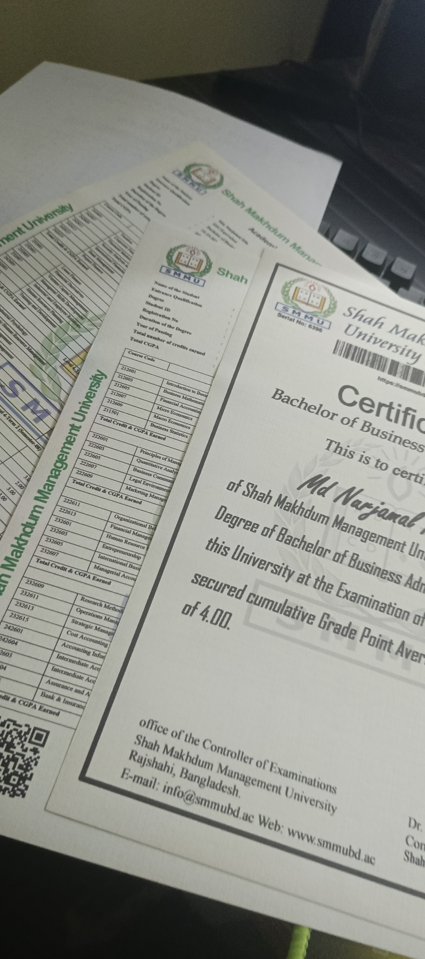 shanto marium University থেকে অনলাইন এবং অরিজিনাল হার্ডকপি ক্নাইন্টকে পাঠানো হলো