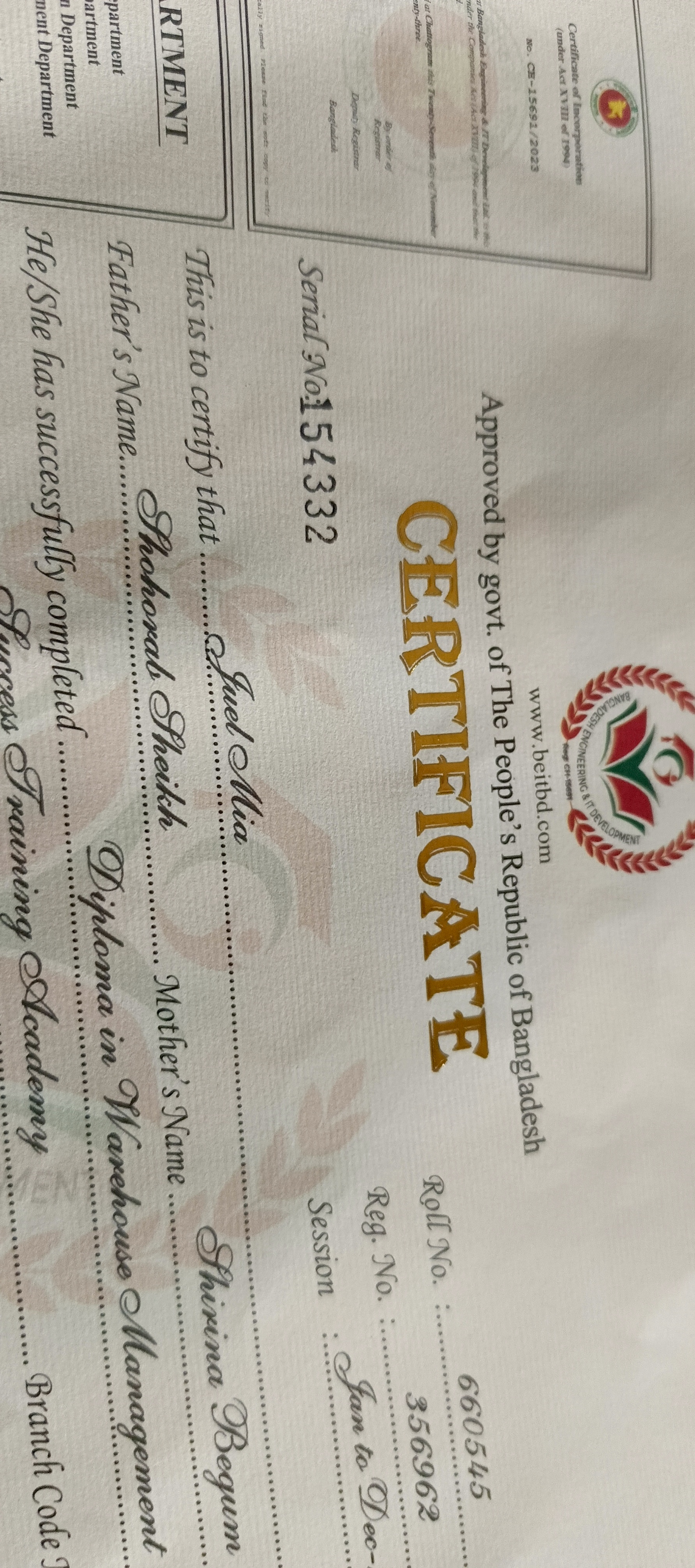 warehous management Certificate skill certifcate karo lagle inbox koren