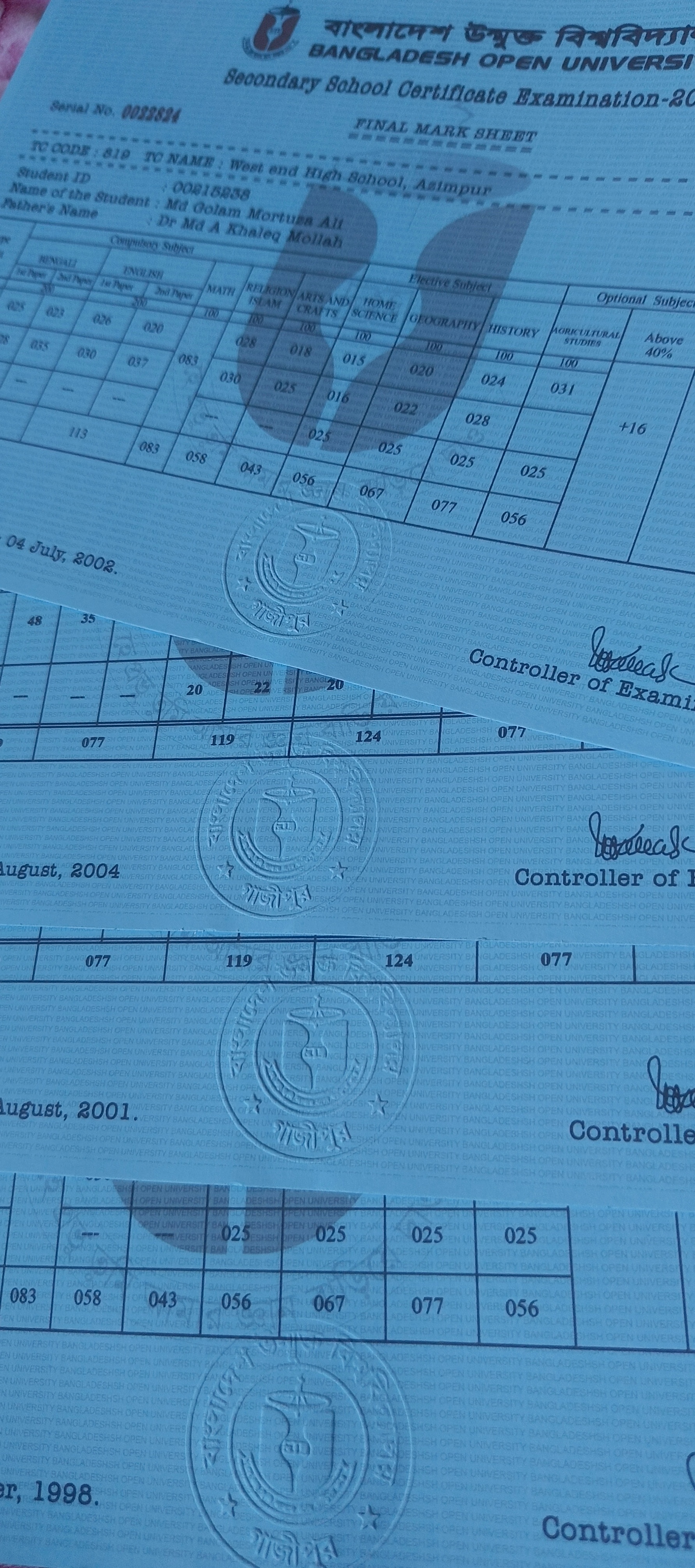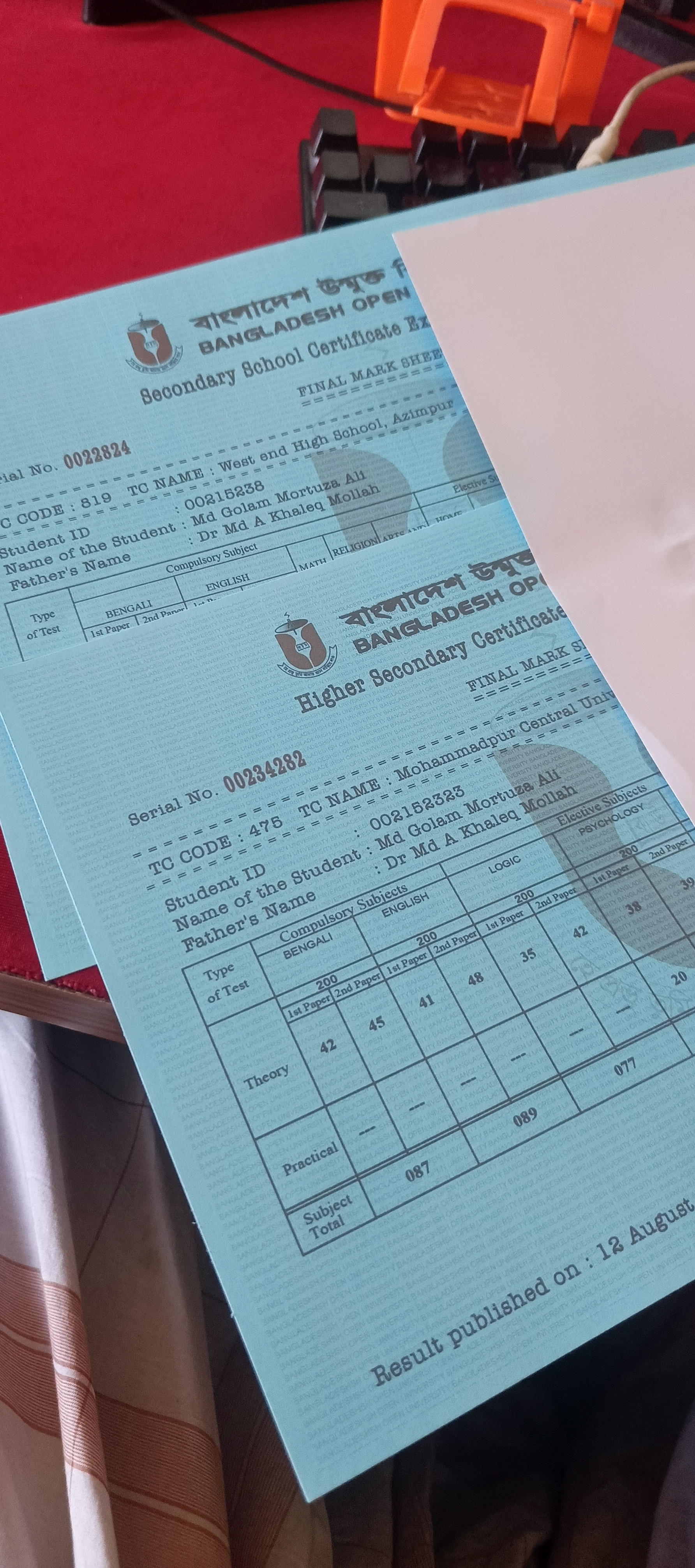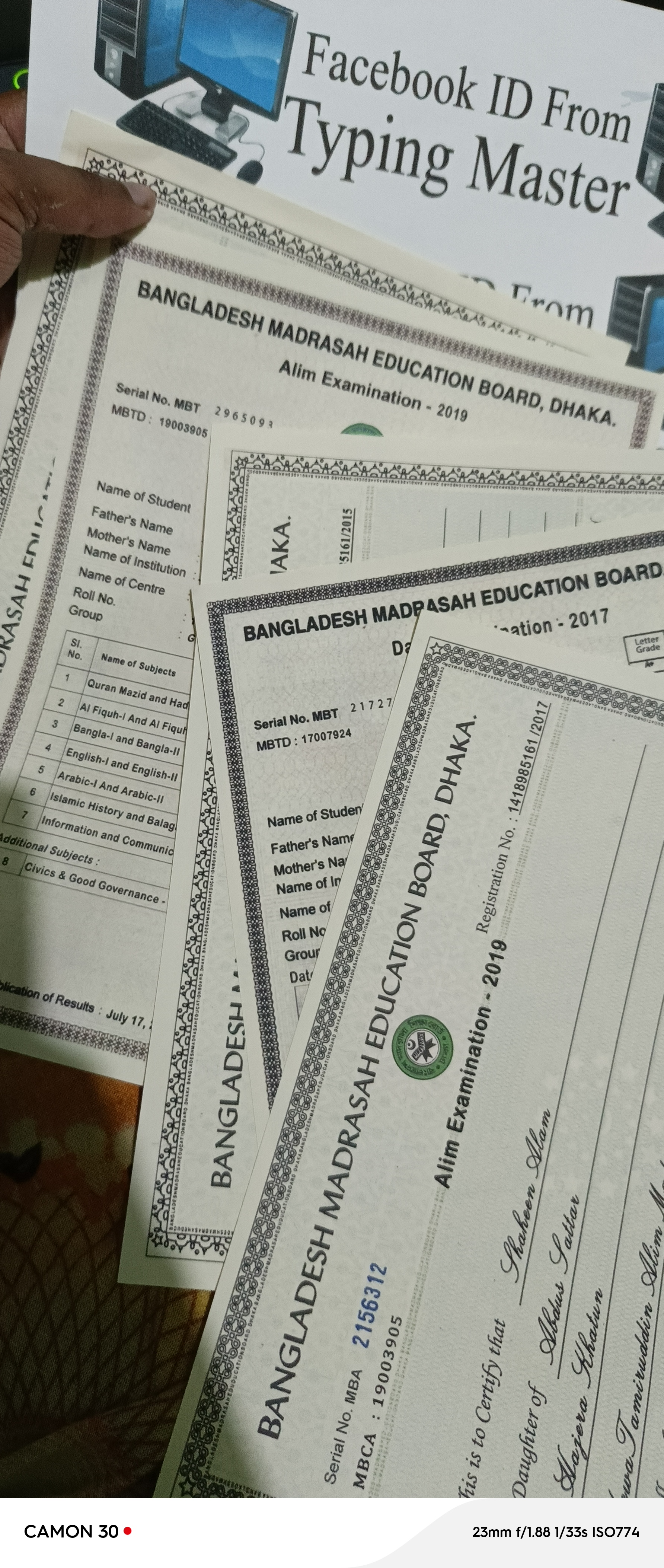 মাদ্রাসা বোর্ডের দাখিল এবং আলিম সার্টিফিকেট এবং মার্কশীট অরিজিনাল হার্ডকপি
