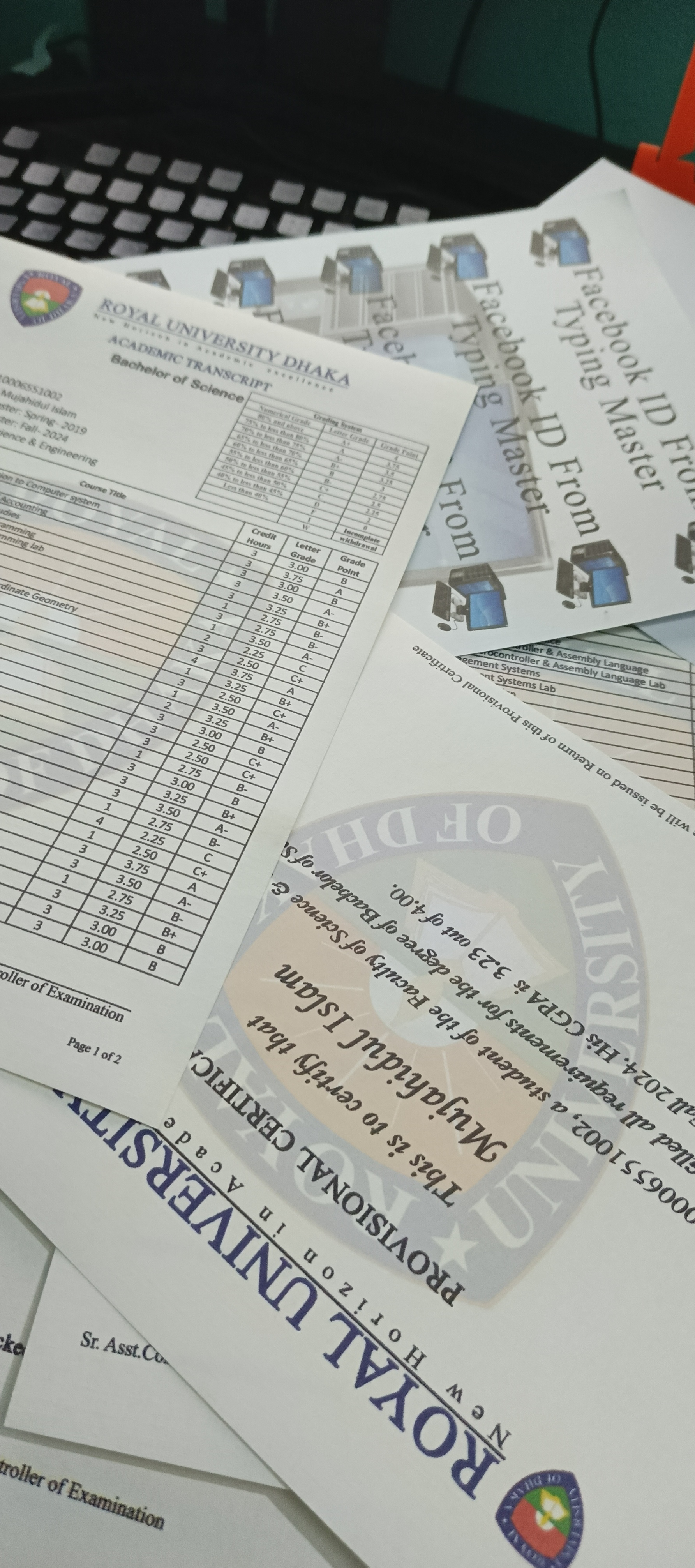 রয়েল ইউনিভার্সিটির অনলাইন কাজ এবং হার্ডকপি