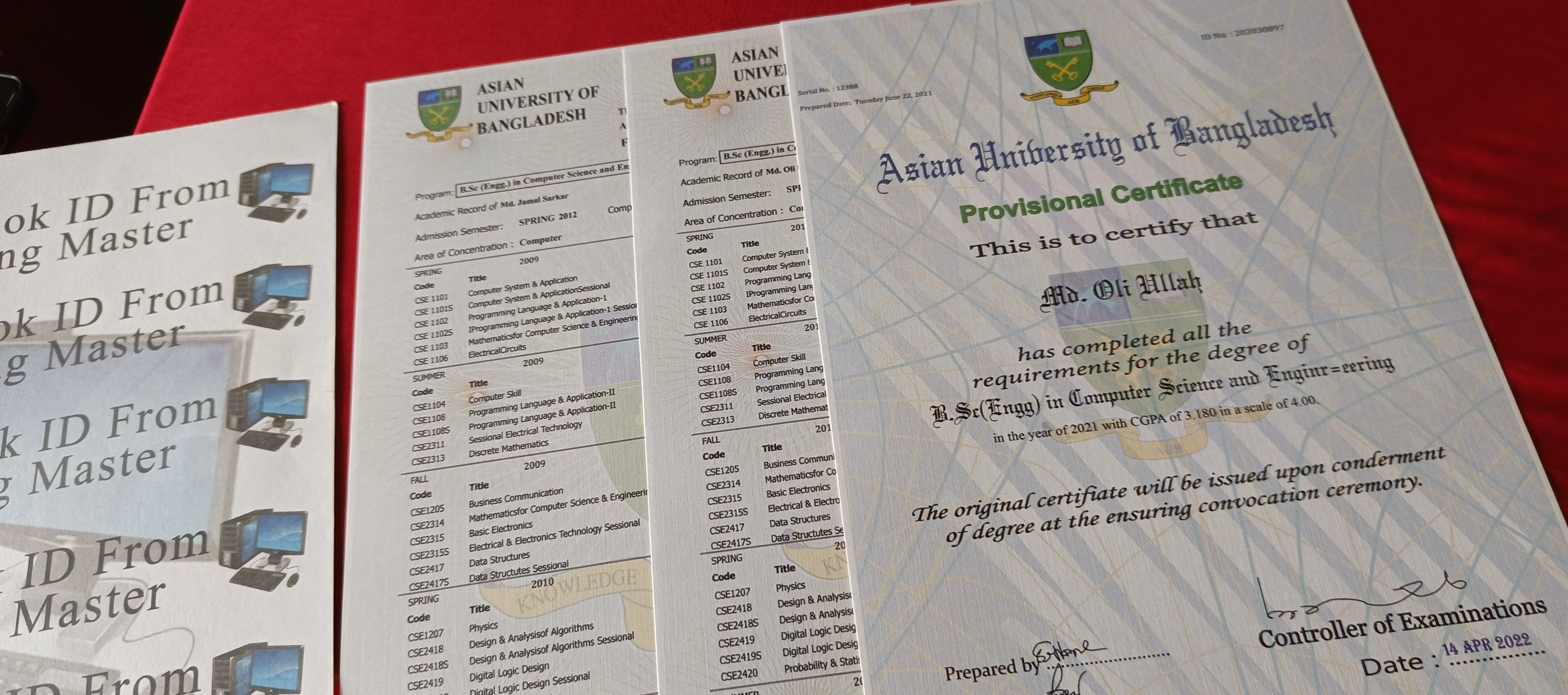 এশিয়ান ইউনিভার্সিটি থেকে ফুল সেট হার্ডকপি