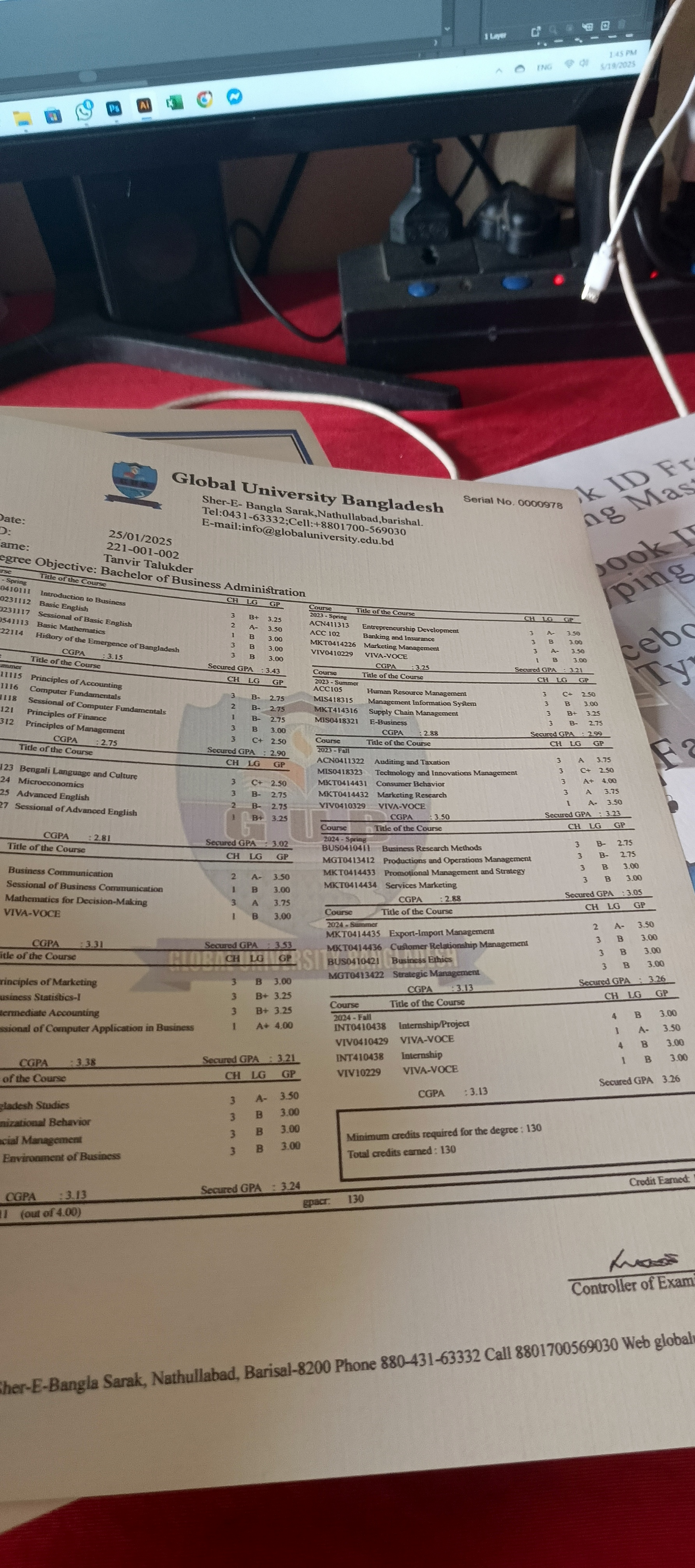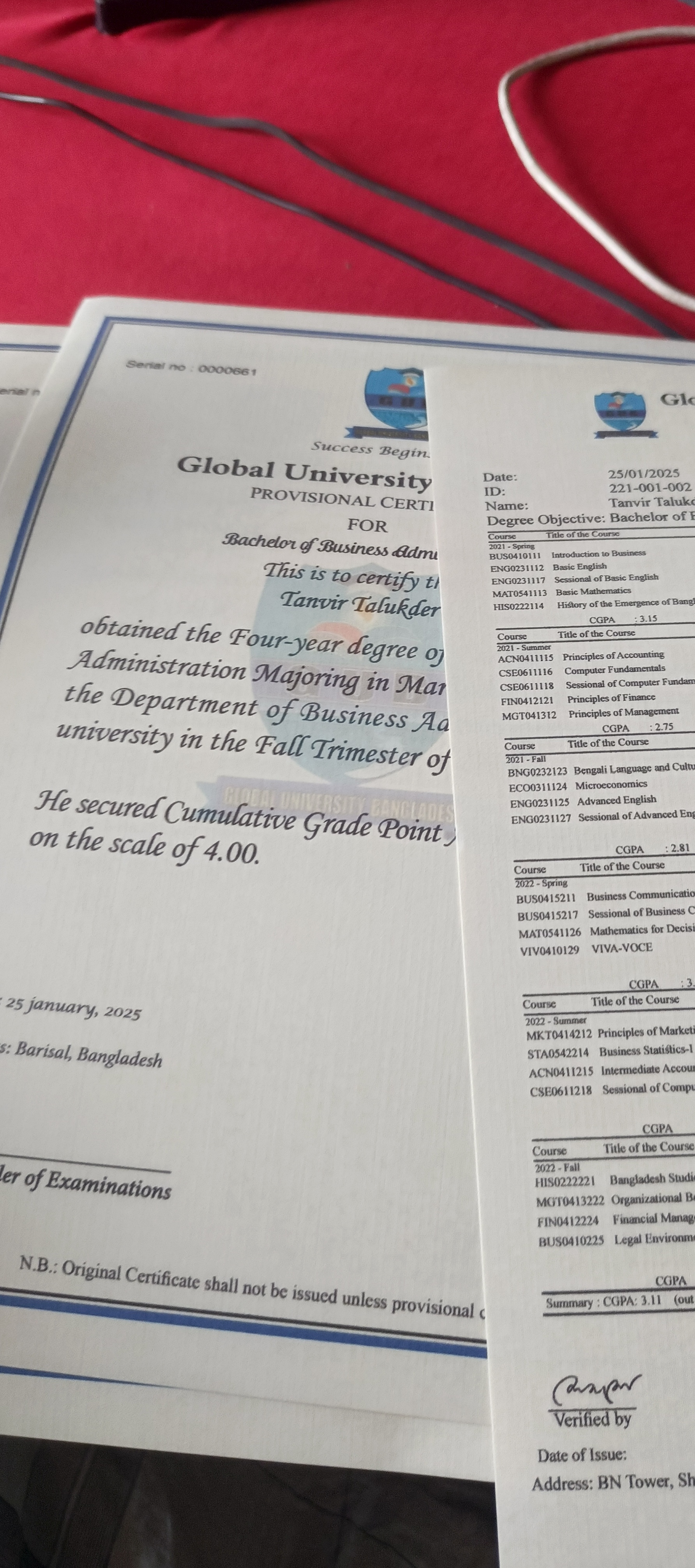 ক্লাইন্ট এর চাহিদা মত Global university থেকে ফুল কাজ করা হলো