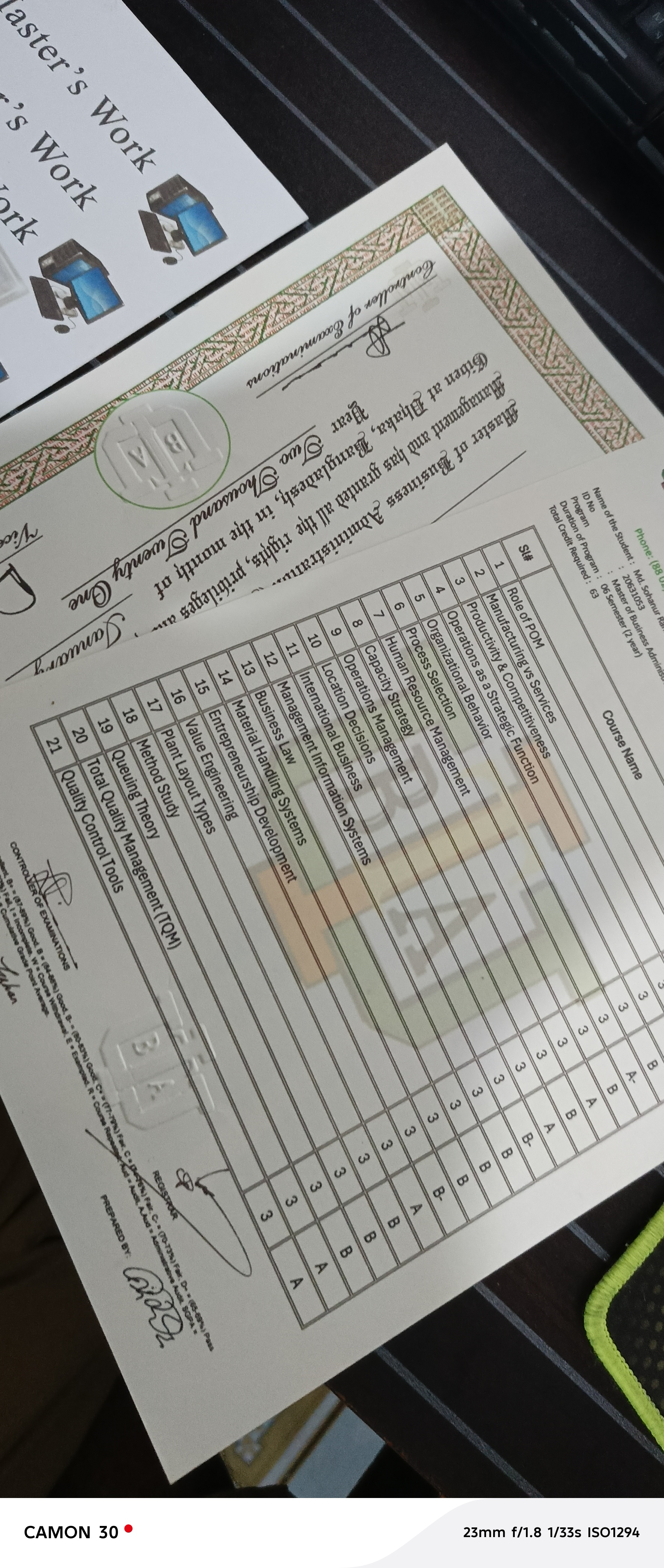 open university ssc and hsc certificate marksheet with emboss
