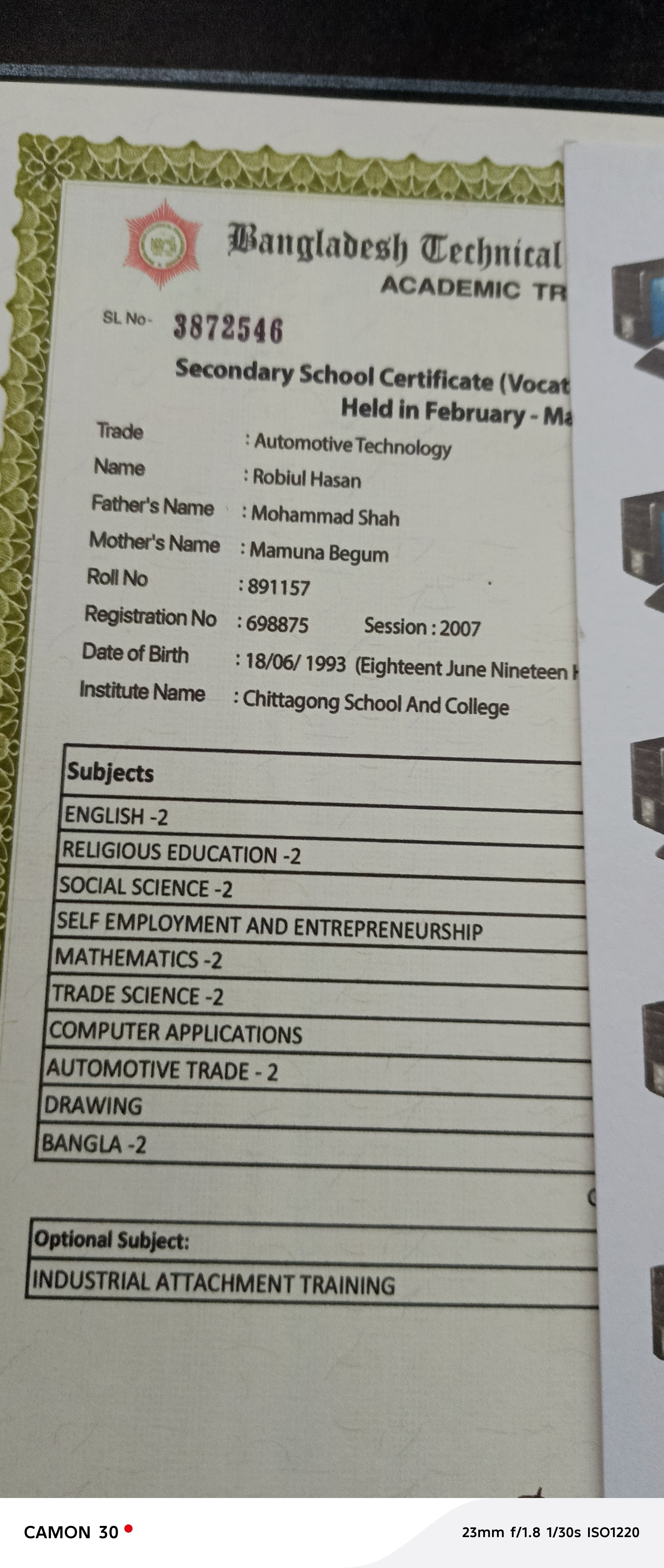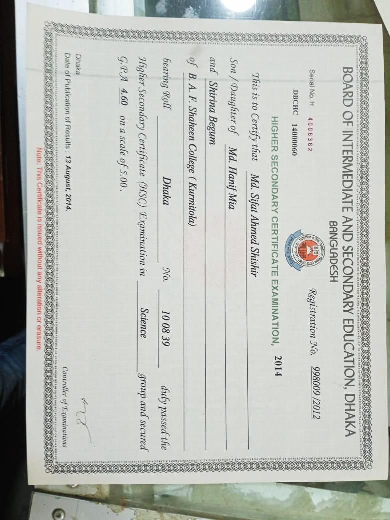 chittagong Board HSC Certificate Hardcopy