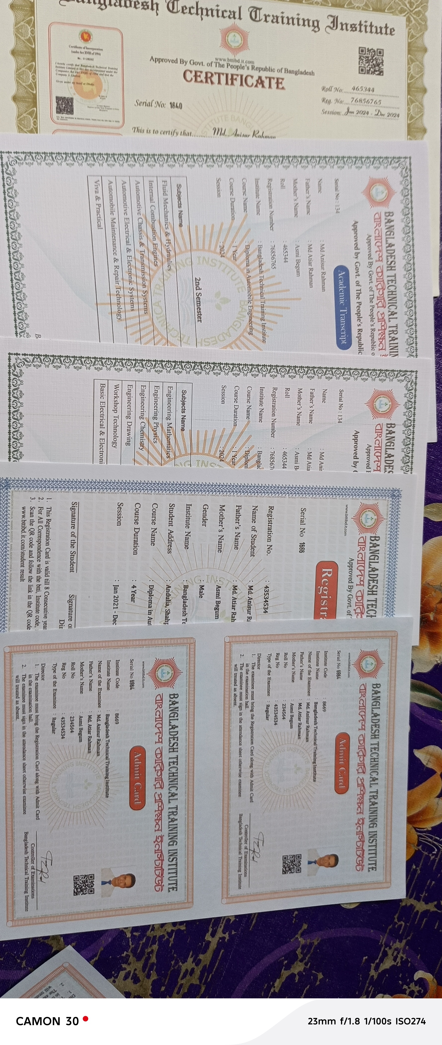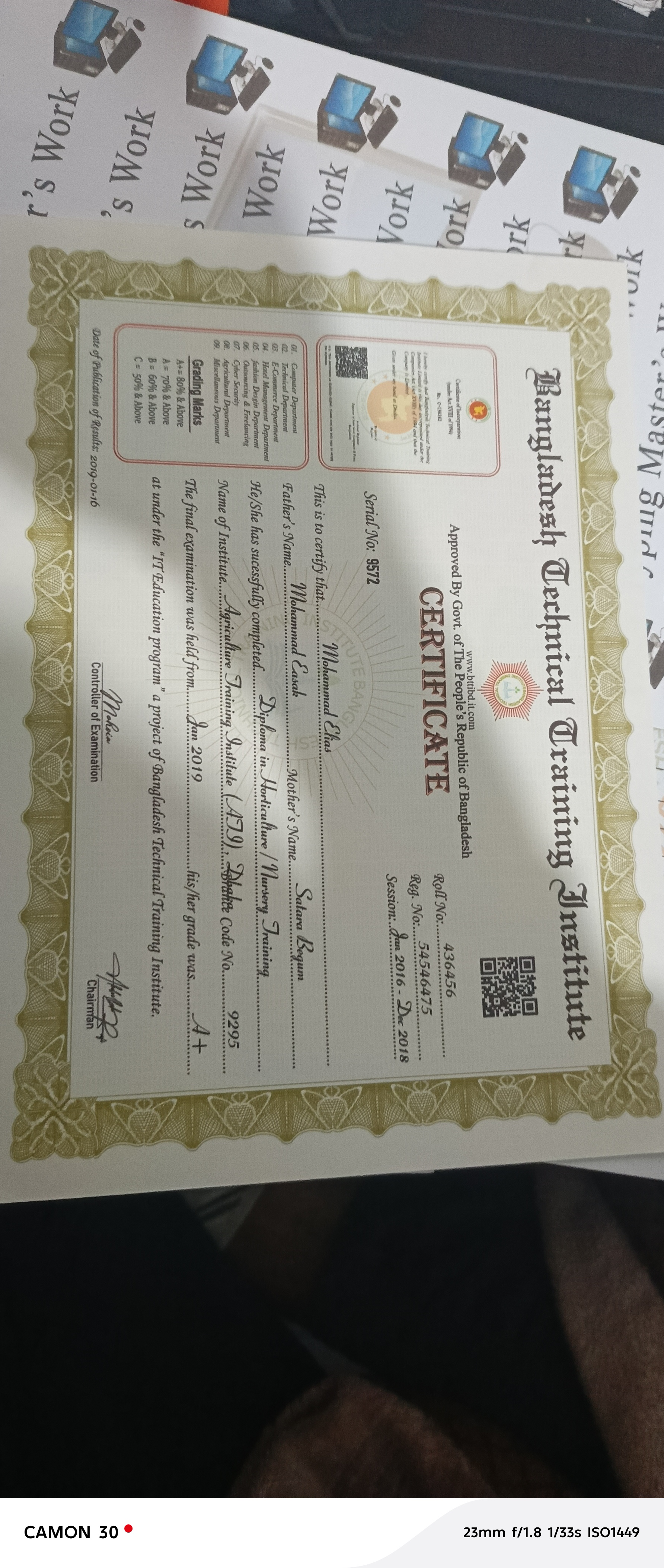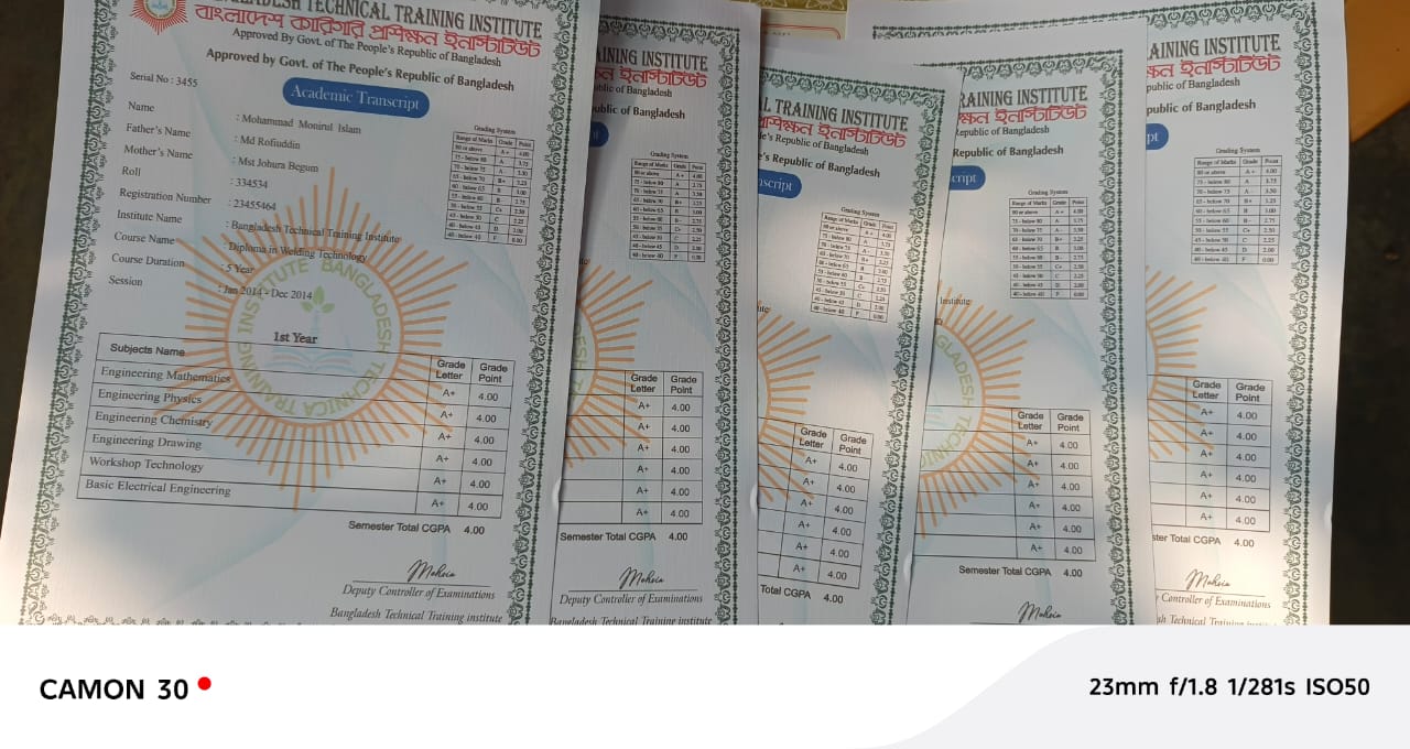টেকনিকাল বোর্ড এর ডিপ্লোমার সাটিফিকেট করে দেওয়া যাবে। অনেক ট্রেনিং সাটিফিকেট দেওয়া যাবে।