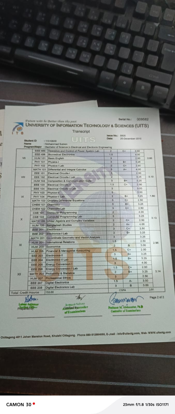university of information tecgnology Bsc in EEE অনলাইন করা হলো। হার্ডকপি ও রেডি