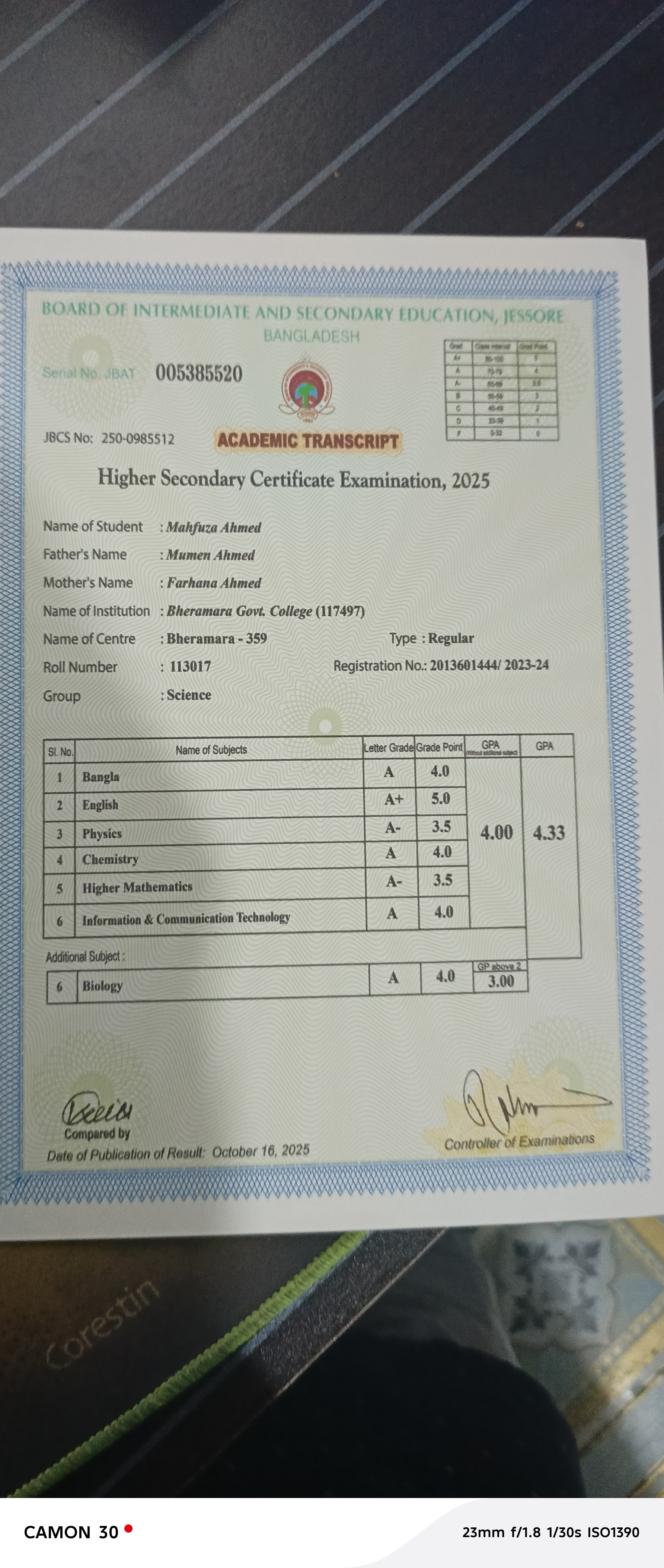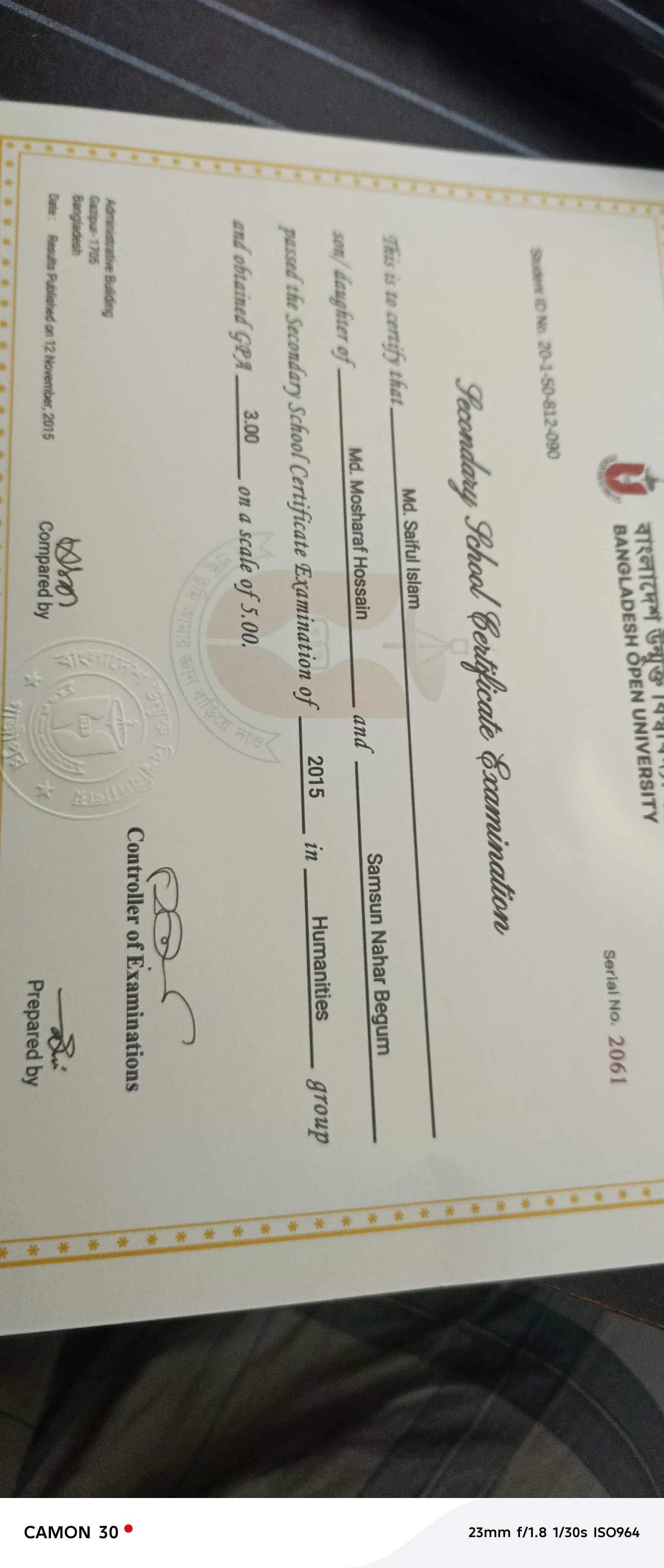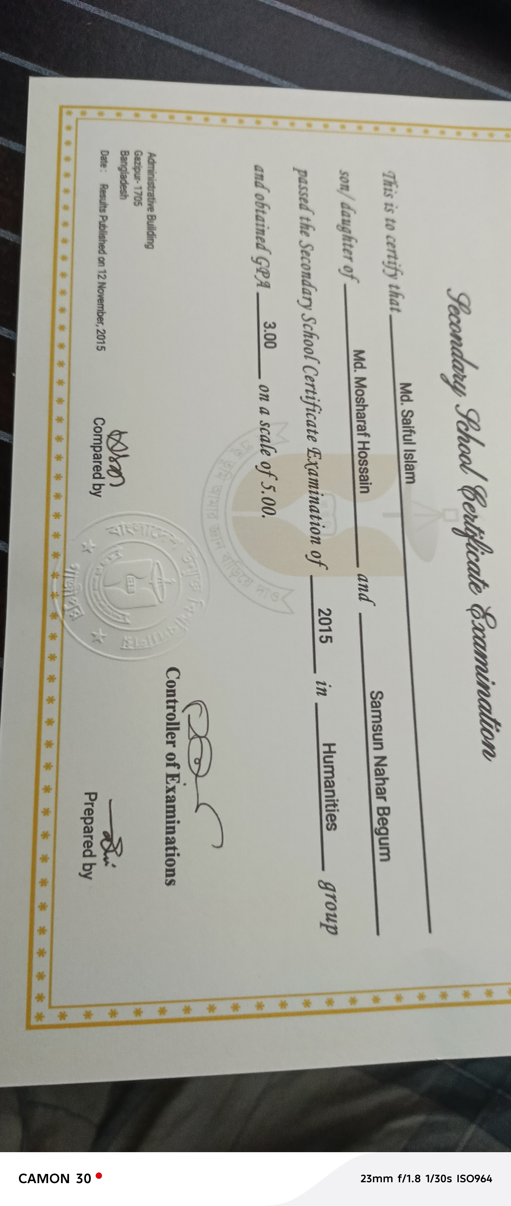 chittagong Board HSC Certificate Hardcopy