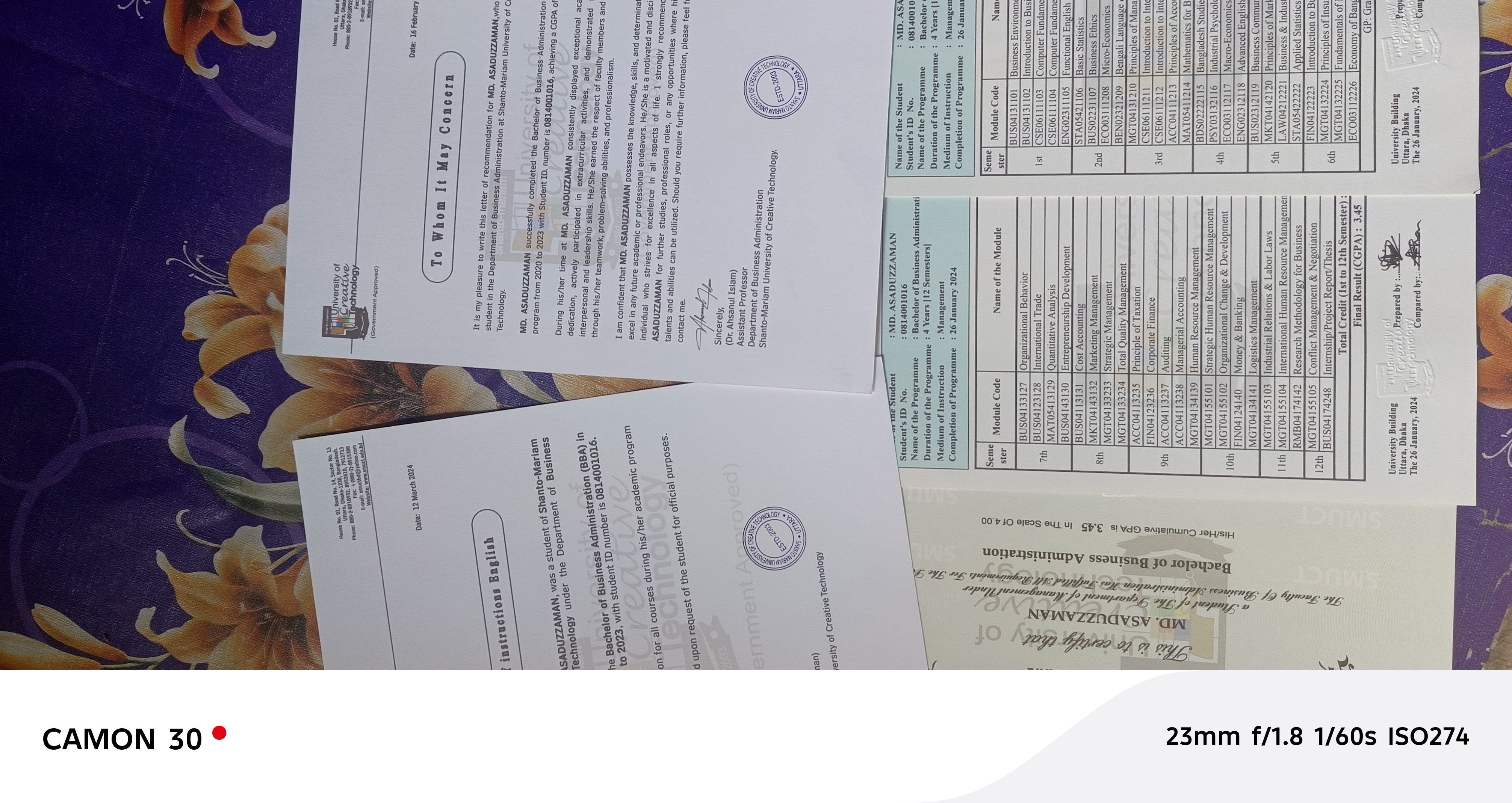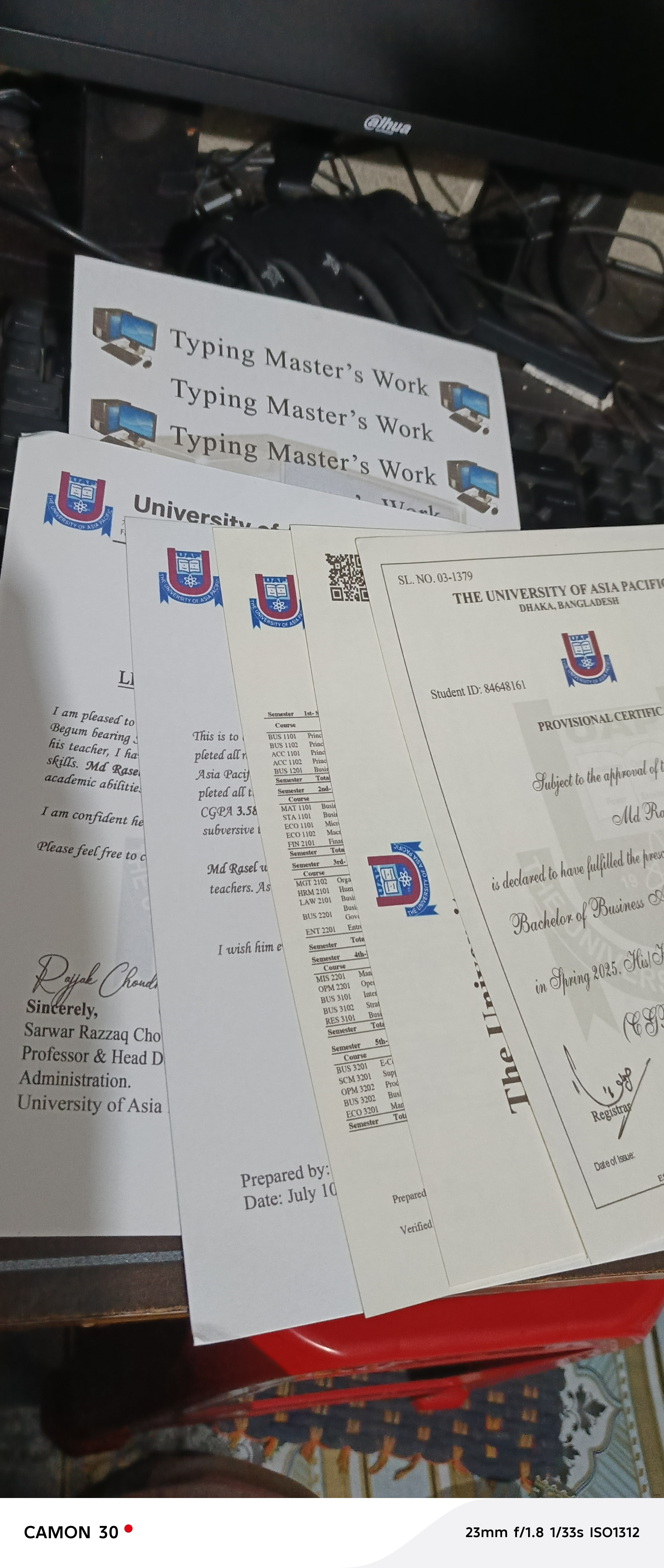 এশিয়ান ইউনিভার্সিটি থেকে মেইন কপি সহ হার্ডকপি