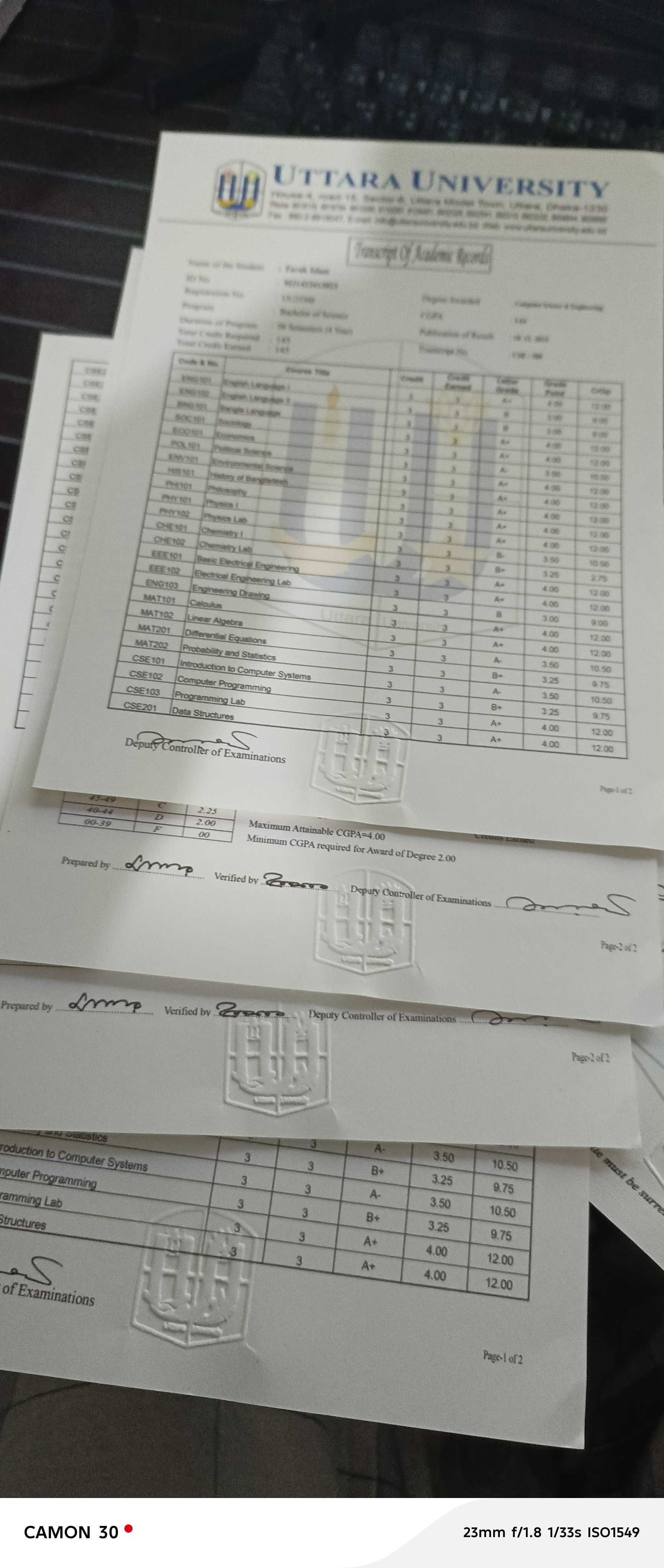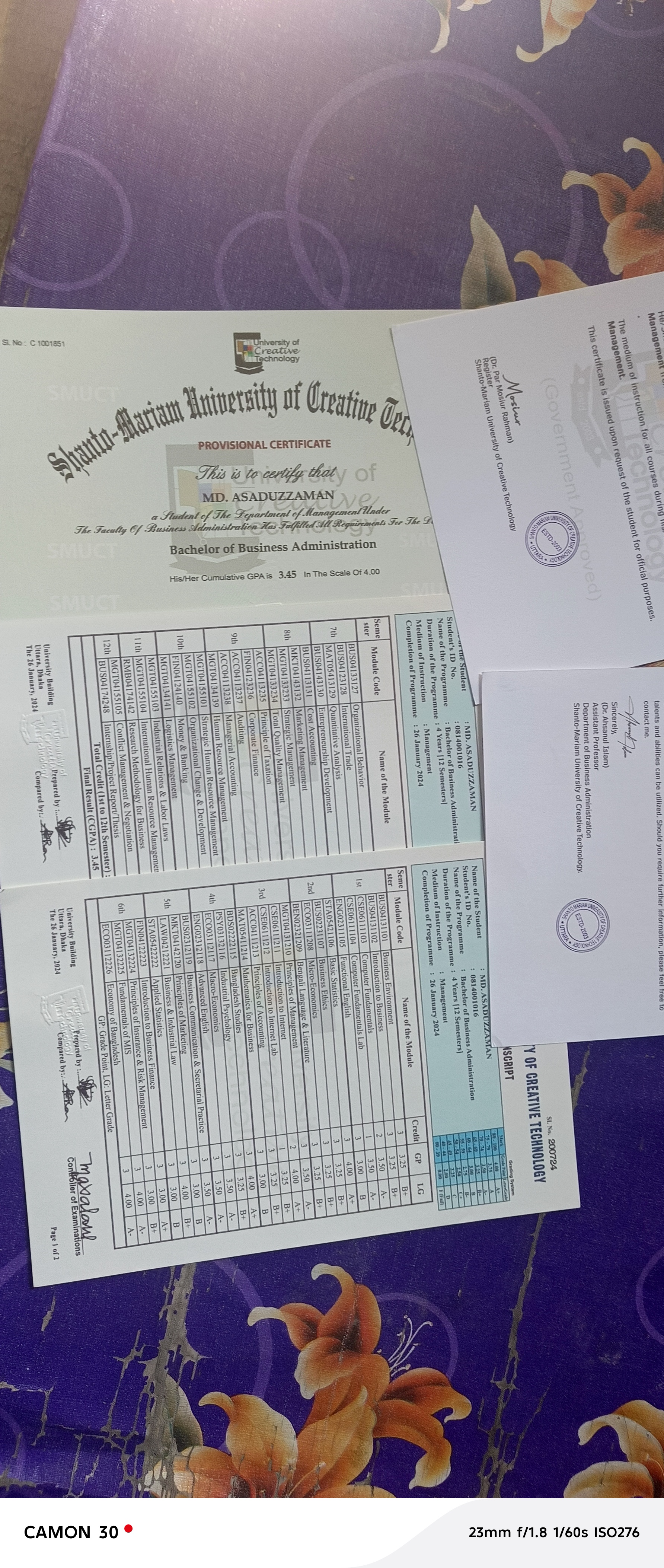 Uttara university main and provisional certificate