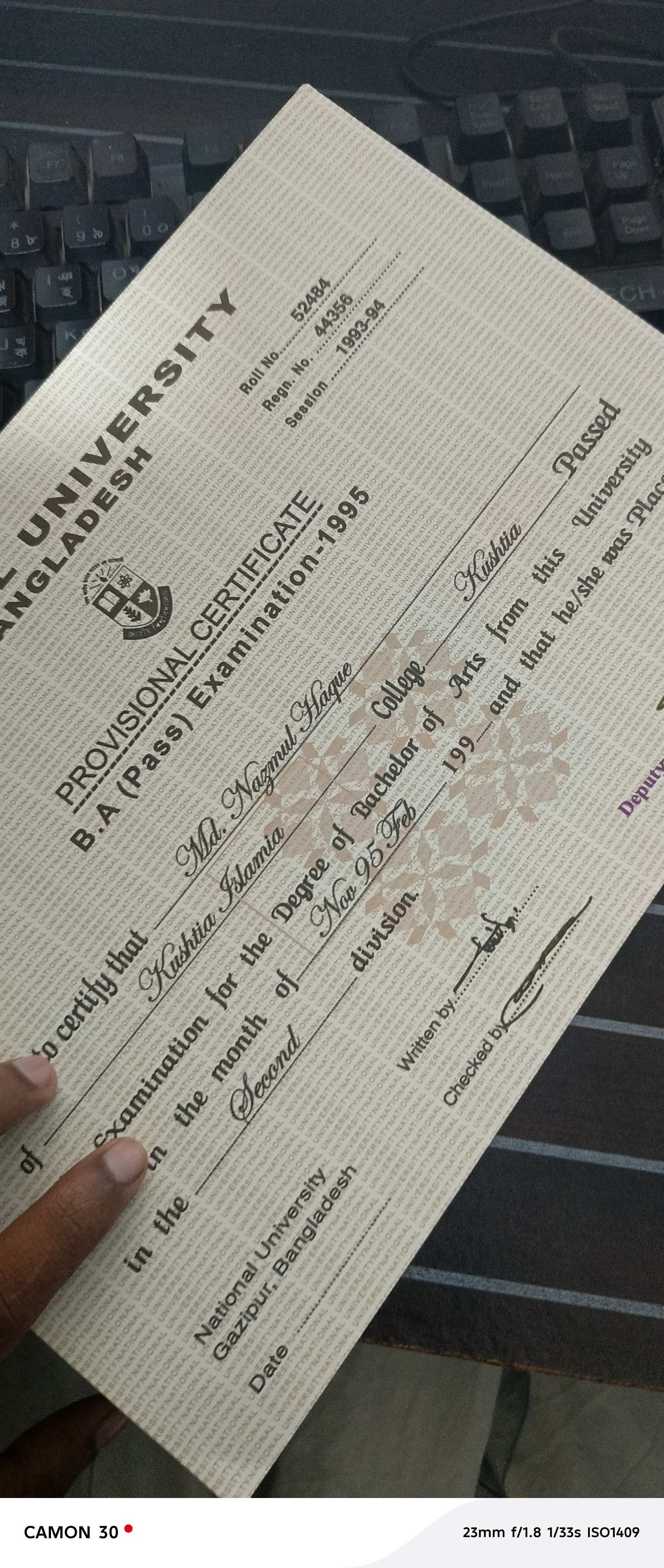 ন্যাশনাল ইউনিভার্সিটি পুরাতন কিছু হার্ডকপি